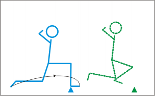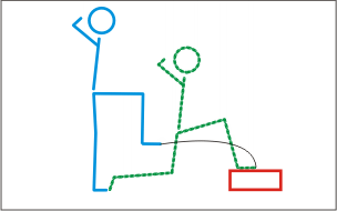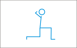 ![]() 7. Uitvalspas op verhoging. Tot 10 x per kant / tot min. 20 cm Standaard uitvalspas, landing op verhoging. Zorg voor grijpende voetplaatsing, doorveren is uit den boze. Eventueel opstapje verhogen totdat de oefening zonder doorveren uitgevoerd kan worden. |