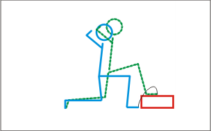 ![]() 6. Knielen-Uitvalspas. Tot 6x per kant. Vanuit knielen heup explosief strekken en een been naar voren brengen. |