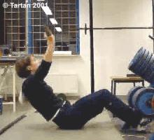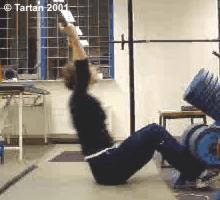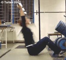 This is one of the best solo exercises for your abs. The contraction of the abs while the force on them increases is very simular to running.