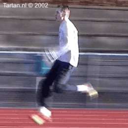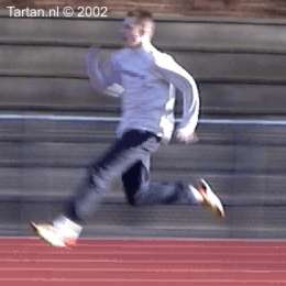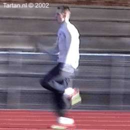 Reactieve loopstijl die perfect past bij een 200/400m loper. Let op het snelle zwaaibeen en de reactieve voetplaatsing. De geweldige stuwing in de steunfase wordt goed vanuit het bovenlichaam ondersteund, en ook de hamstrings worden optimaal gebruikt.