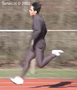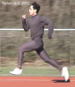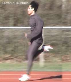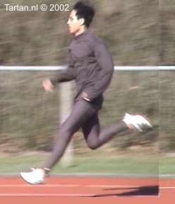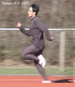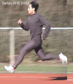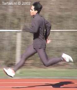 Reactieve loopstijl van een meer explosieve sprinter. Let vooral op de geweldige beweging van de heup, het strekken en de rotatie, en de reactieve voetplaatsing.