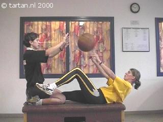 Atleet ligt op een (klein) randje. Een been wordt gestrekt gefixeerd. De houding (been-bekken-bovenlichaam) moet zoveel mogelijk gestrekt zijn.