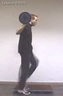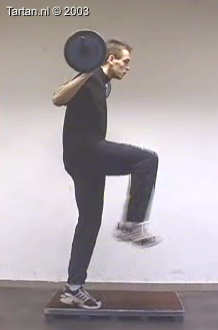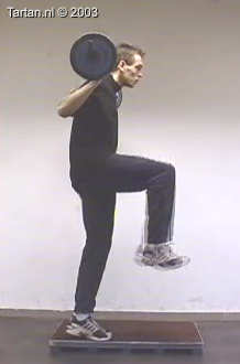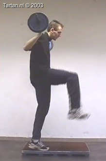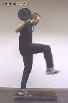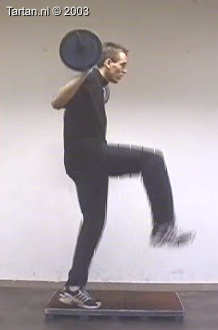 Oefening bestaat uit een snelle been wissel vanaf een kleine verhoging.