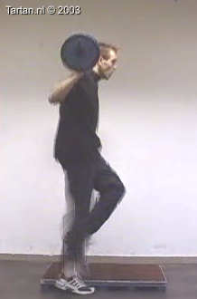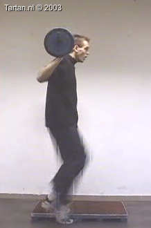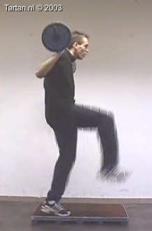 Op kleine verhoging goed voorspanning maken en vervolgens zo snel mogelijk een keer kaatsen op het vrije been.