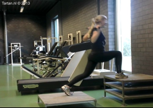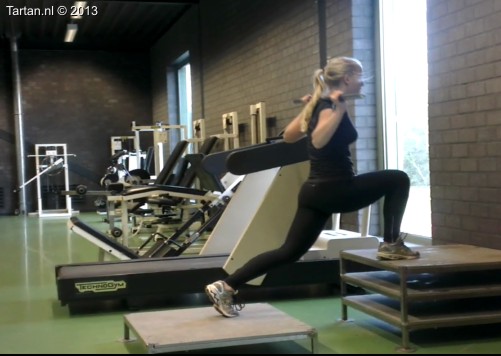 Once you have mastered Step Up Jump In you could consider moving to this exercise. With the lunge-extension added the athlete can keep moving forward, this way the exercise more closely resambles a horizontal take-off, like in hurdling, long-jump or triple-jump. The lunge it self has no purpose. If you are ready you could advance to Step Up Double Scissor to improve your skills.