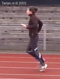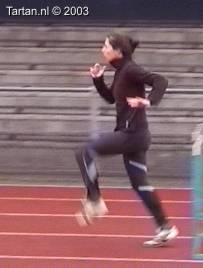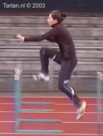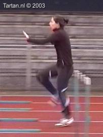 Deze drie-pas is bijzonder goed uitgevoerd. Het opzwaaibeen (OZB); zeer spits opgezwaaid, meteen na de horde naar beneden en landing halve voet acht de horde(!). Het bijtrekbeen (BTB); meteen na de afzet wordt bijtrek beweging ingezet, continue beweging naar voren, mooi hoog gesloten.
