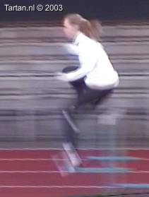 Keurig uitgevoerde 3pas. Goed voet- en rompspanning tussen de hordes. Goede strekking tijdens de afzet. Na de horde is de spanning meteen goed terug. Opzwaaibeen (OZB) en bijtrek been (BTB) zijn goed getimed en zijn goed op elkaar ingespeeld.