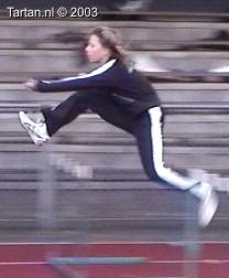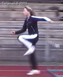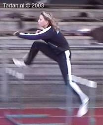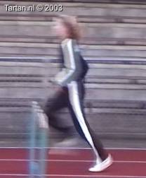 Zeer jeudig talentje met veel potentie. Het lijkt al echt op horden lopen. Beweging is goed aangeleerd, zodat er snel aan verfijning begonnen kan worden. De baan van het LZP is reeds goed, wat duidt op een goed gevoel. De atlete heeft al volledige controle over de beweging. Zo kan na de horden meteen weer weglopen worden. De armbeweging is goed gecoordineert en ondersteunend.
