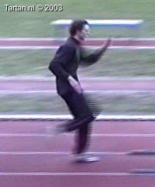 De grote B-junior is net ontwaakt uit zijn slungel tijdperk. Zijn techniek lijkt echter al bewust aangepast aan zijn lengte. Zijn beide knieën zitten bijna overdreven hoog, iets waar hij pas op 106cm echt plezier van gaat beleven. Opzwaaibeen (OZB) staan nu toe dat hij dicht voor de horde afzet en dicht achter de horde land, zodat hij optimaal gebruik kan maken van de ruimte tussen de hordes.