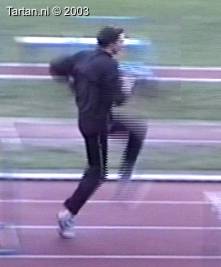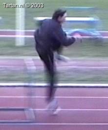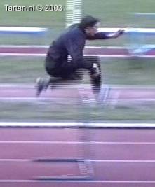 Het voeten werk van deze atleet laat nog veel te wensen over. Muv het eerste steun na de horde gebeurt er aan de grond bijzonder weinig.